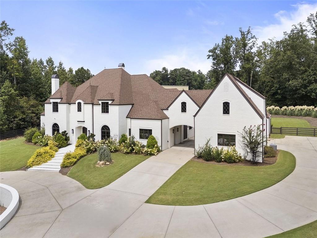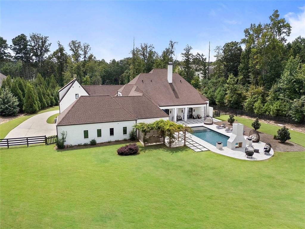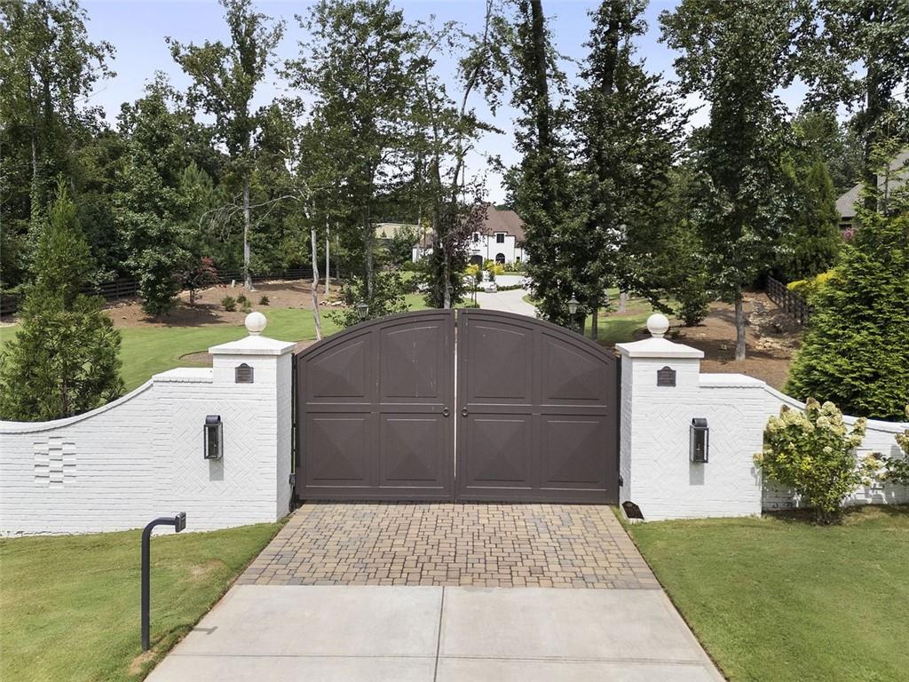 Welcome to a rare offering in luxury real estate-an extraordinary custom-designed residence nestled behind double-entry gates on 2.68 acres of pristine privacy. Located just moments from Lake Lanier, this fully furnished estate redefines refined living with unmatched style, function, and resort-inspired amenities. From the moment you enter the grand foyer, soaring ceilings, walls of glass, and architectural artistry capture your attention. A dramatic formal dining room and richly paneled cigar/library lounge set an elegant tone, while a two-sided fireplace anchors the expansive living room and flows effortlessly into the gourmet chef's kitchen-outfitted with an ILVE Majestic dual-fuel range, quartzite countertops, a sun-soaked breakfast nook, and sprawling island designed for entertaining. The main-level primary suite is a personal retreat featuring a spa-like bath with a steam room, essential oil soaking tub, and dual custom closets. Upstairs, four spacious en-suites impress with bespoke finishes and a gallery-like overlook framed by imported cast iron balusters. A private guest house, connected by a covered porte-cochere, includes a full luxury kitchen, walk-in pantry, and laundry-perfect for long-term guests or multi-generational living. Outdoors, enjoy the spectacular heated pool and spa, complete with waterfall features and fire elements, surrounded by lush landscaping and proximity to a private boat slip (just 0.35 miles away) completes the dream. Also includes a theater room and pet grooming station (not pictured). Offered fully furnished and move-in ready.